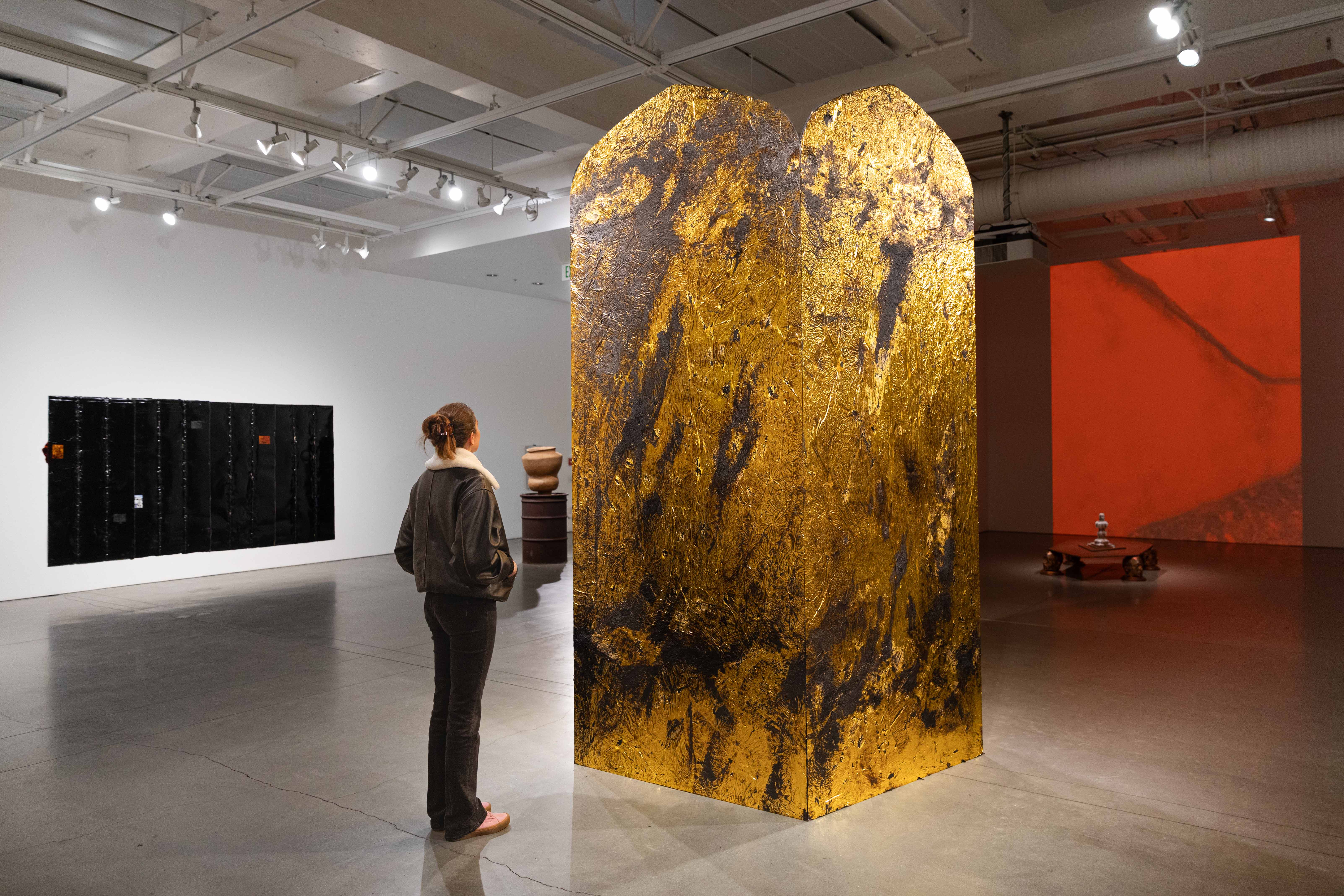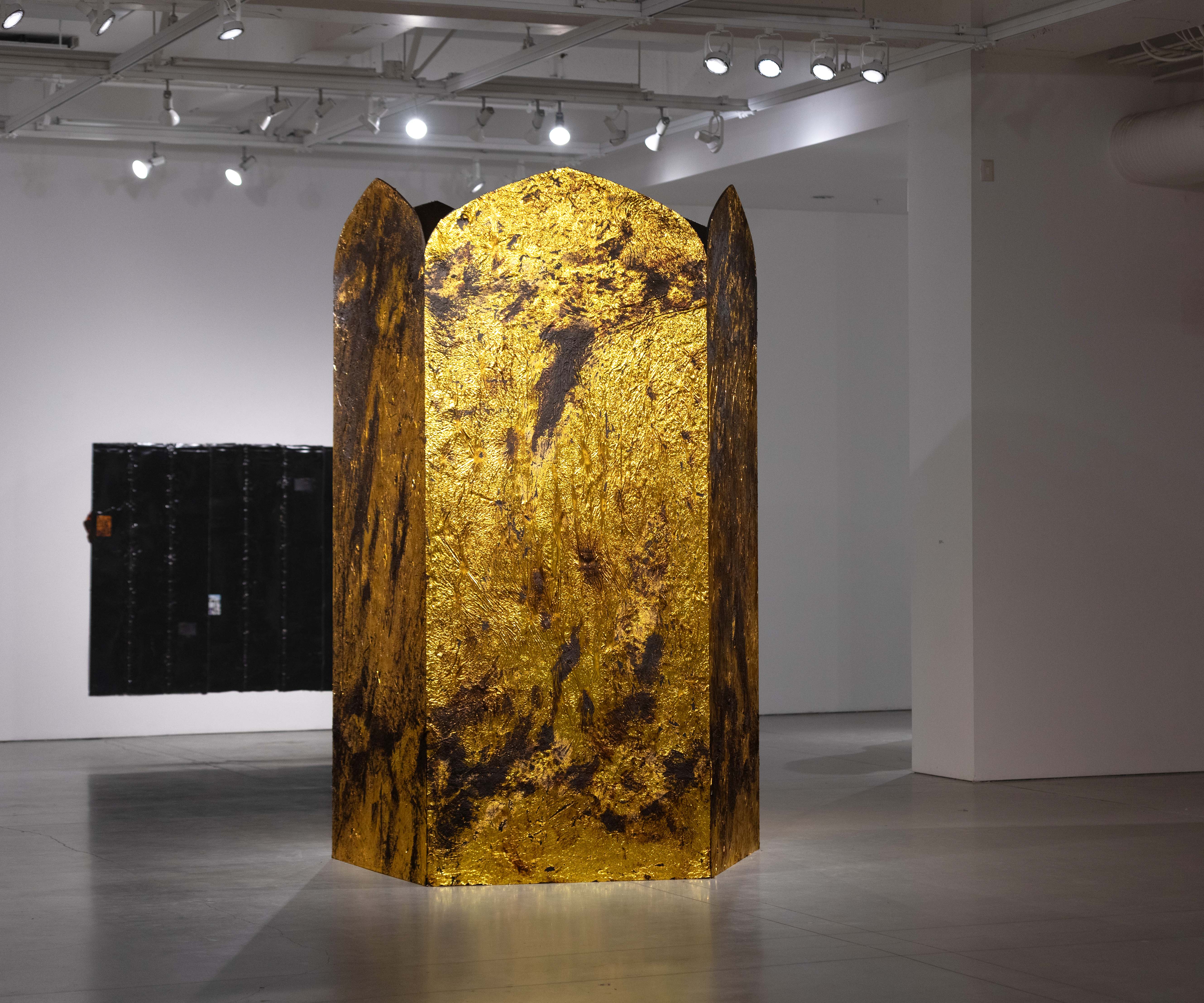 Gold emergency blanket and tar on OSB